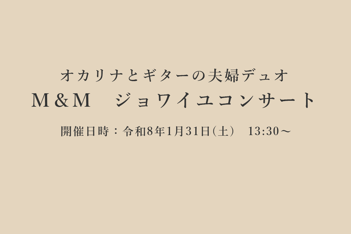 オカリナとギターの夫婦デュオ M&M ジョワイユコンサート開催!オカリナの美しい響きをギターの音色に乗せて、夫婦の息の合った優しいハーモニーを皆様にお…